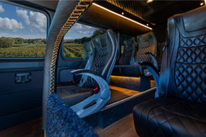 Modern 2024 Mercedes Benz Sprinter with 14 comfortable seats, styled with high quality interior detailing for Private, Executive & VIP Transport.